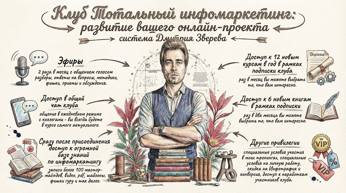 Именно для этого я более 5 лет назад и создал специальный клуб Тотальный инфомаркетинг.