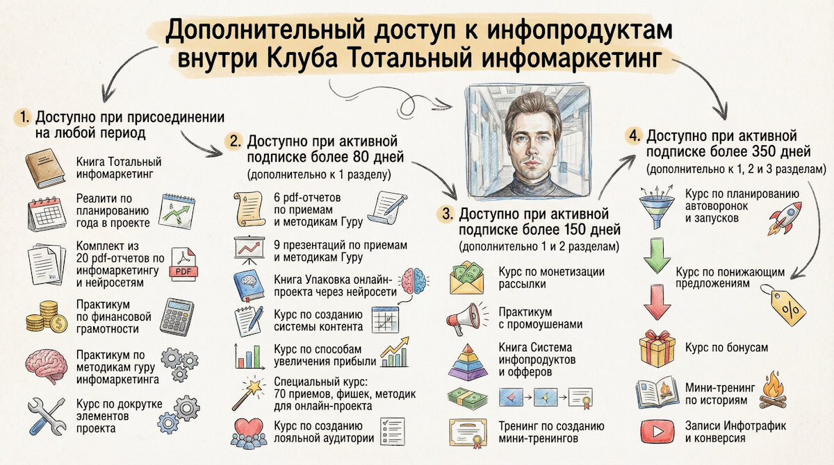 Итого по дополнительным инфопродуктам внутри клуба - наглядно на картинке: