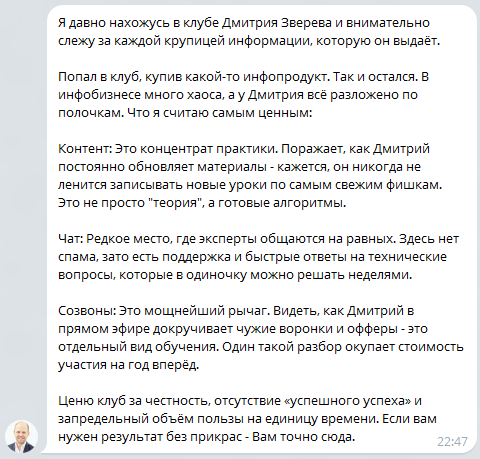 И я не собираюсь вас уговаривать делать это. Если вы понимаете ценность предложения и перспективы развития проекта, то клуб вам подойдет. Если же для вас это не актуально, то просто не тратьте свое и мое время.