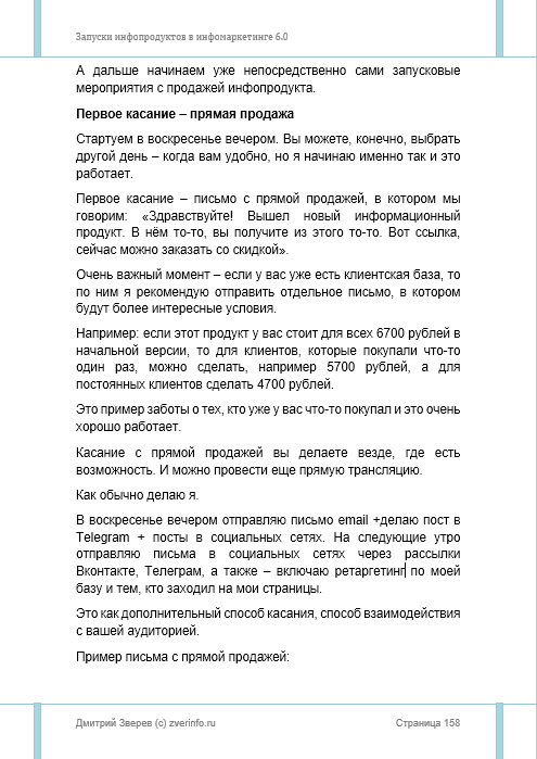 Но - не делайте ошибки, полагая, что книга не даст вам нужной информации. Еще как даст. Бьюсь об заклад, что в рунете нет аналогичного пособия, в котором бы рассматривались структуры запусков всех основных форматов инфопродуктов по таким условиям.