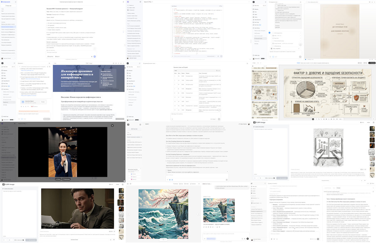 Решайте жизненные вопросы, планируйте, генерируйте тексты и разнообразный нейросетевой контент в DeepSeek, Qwen, Kimi, GLM, Ernie, Minimax