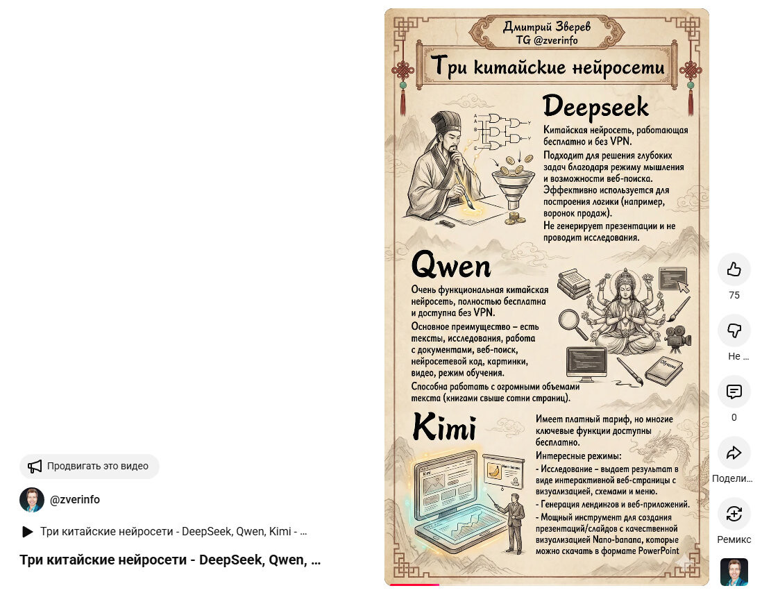 - И даже для вертикальных видео Reels/Shorts - берется инфографика, к ней добавляется аудио и получается симпатичный ролик:
