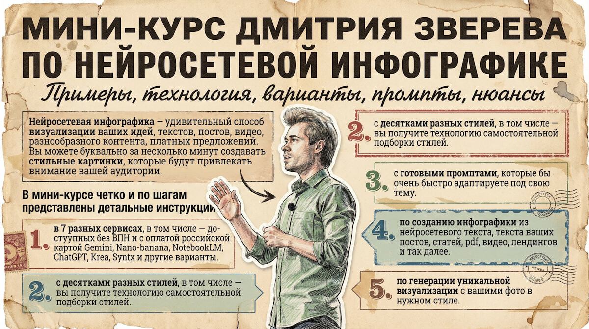Рассматриваем мы и оригинальные интерфейсы Gemini, NotebookL, ChatGPT, которые потребуют ВПН при заходе из России и в которых есть в том числе и бесплатные генерации. А как оплатить платные тарифы даже без иностранной карты - есть информация в курсе.