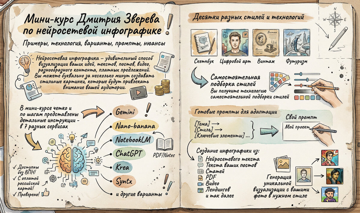 Рассматриваем мы и оригинальные интерфейсы Gemini, NotebookLM, ChatGPT, которые потребуют ВПН при заходе из России и в которых есть в том числе и бесплатные генерации. А как оплатить платные тарифы даже без иностранной карты - есть информация в курсе.