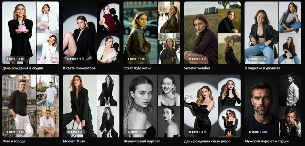Листайте слайдер, чтобы посмотреть (обращаю ваше внимание, что степень реалистичности фото можно регулировать и вы можете предстать в любом образе, который вам нужен):