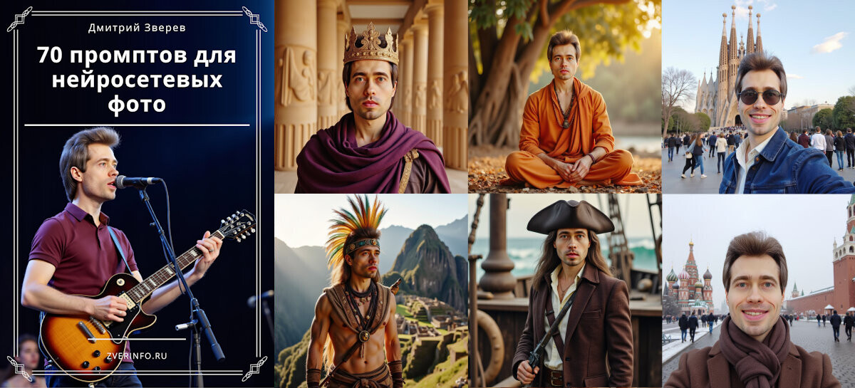 Дополнительно вам будет предоставлена подборка из более чем 70 промптов для генерации разных образов - там есть как мужские варианты, так и женские. Некоторые мужские с моим примером :)