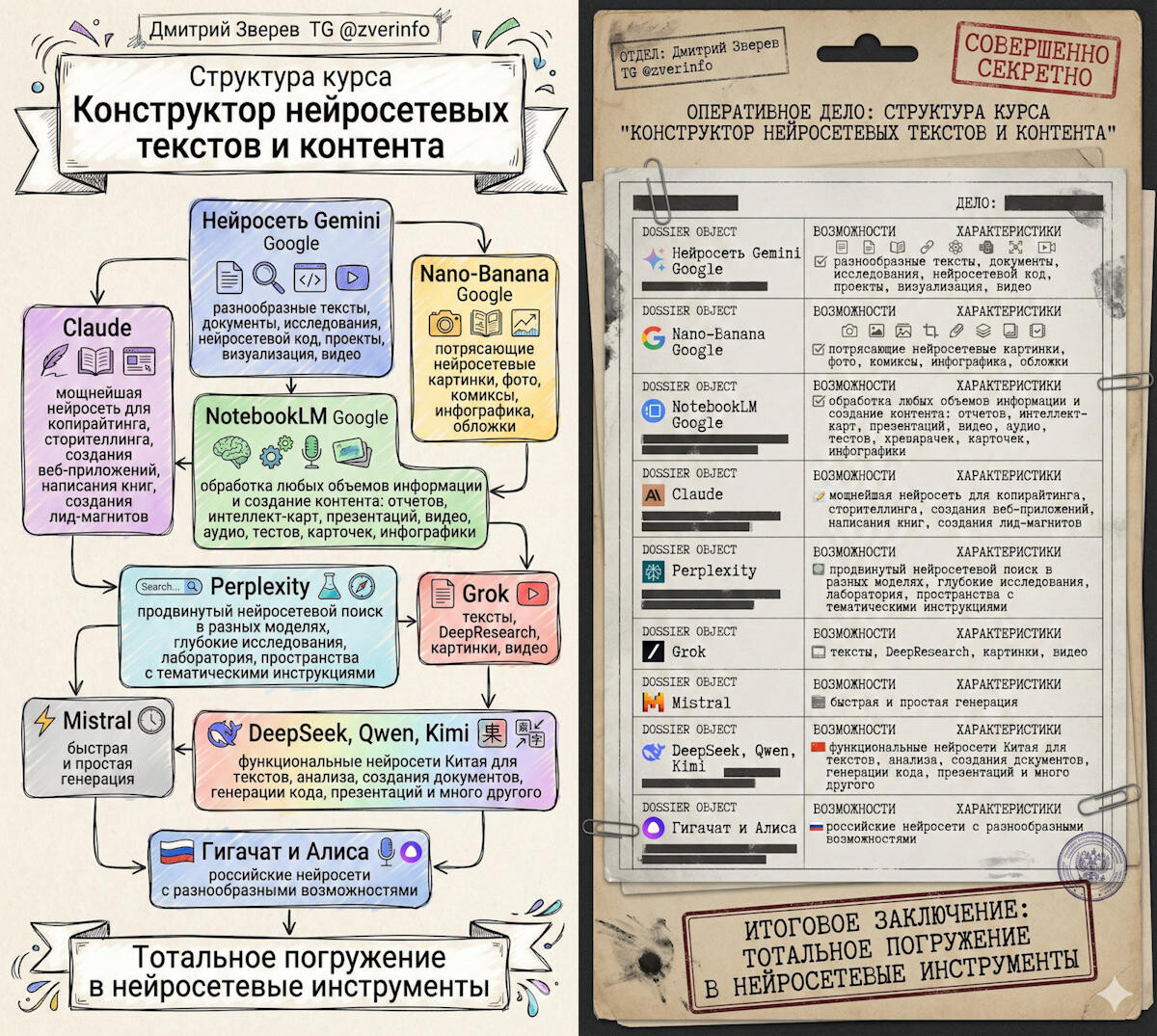 Через Gemini, NotebookLM, Nano-banana, Claude, Perplexity, Grok, Mistral, DeepSeek, Qwen, Kimi, Гигачат от Сбера, Алиса от Яндекса, сервисы-посредники