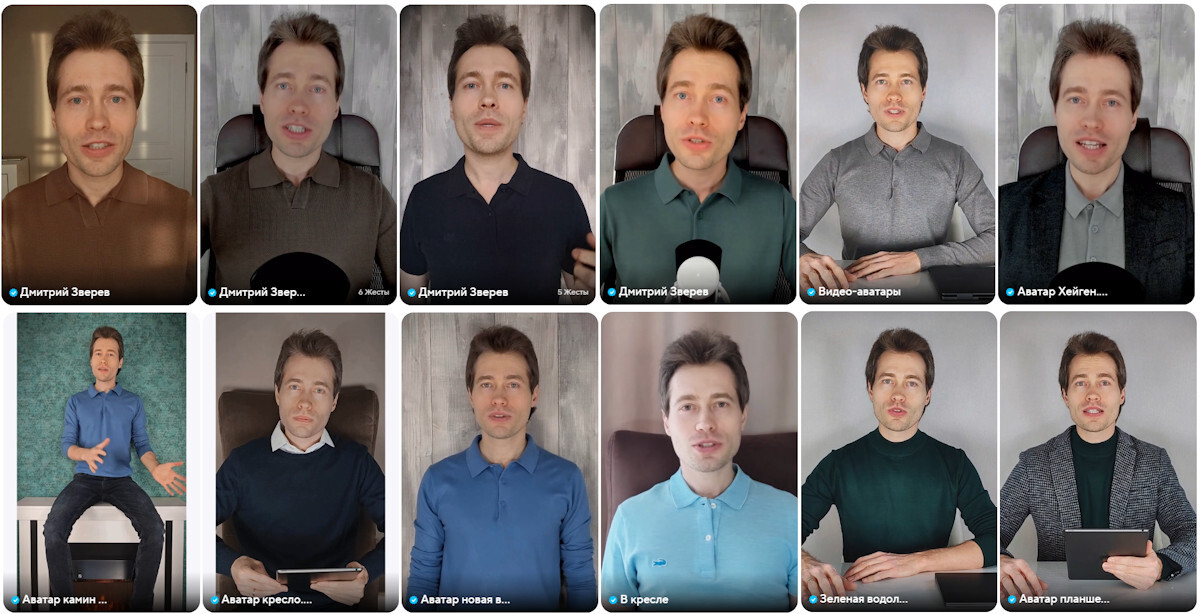 А ниже видео с другими моими аватарами - очень удобно то, что можно сделать разные варианты (в разном месте, в разной одежде, с разной прической и так далее) и потом очень быстро создавать новые видео: