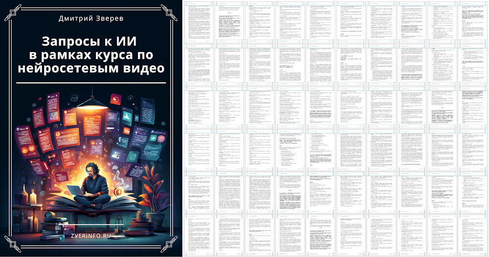 214-страничный pdf-отчет с полными текстами промптов (запросов) к нейросетям и ответами системы из первого раздела курса, где мы говорим про генерацию тем, структуры и сценариев видео через ИИ: