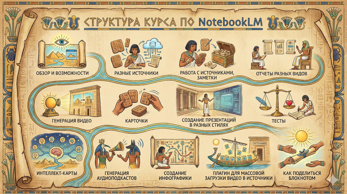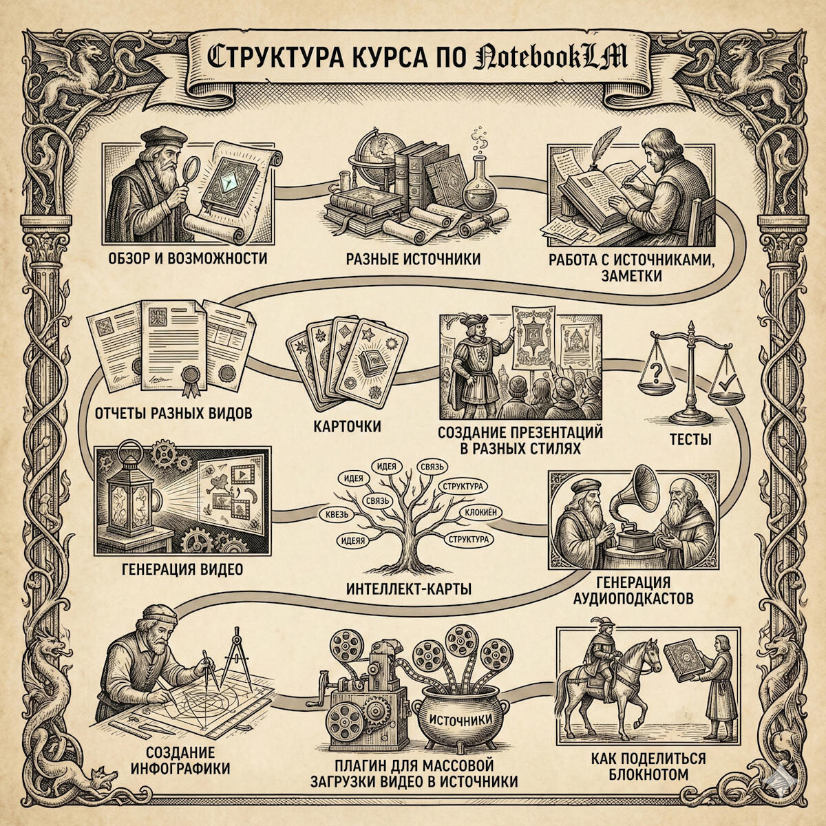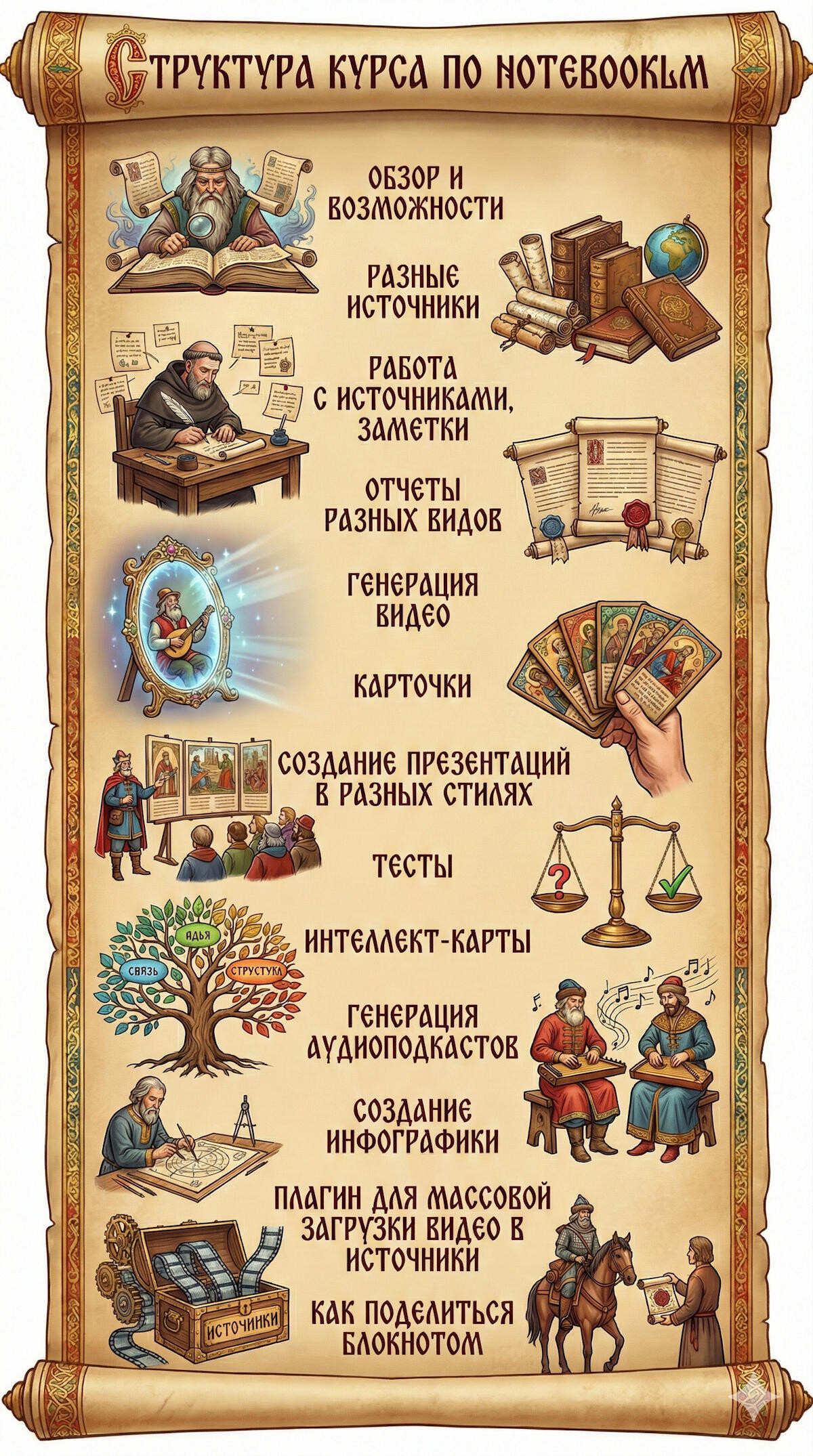Быстрое изучение и обработка любых объемов информации и генерация по ним разнообразного контента: отчетов, невероятных презентаций Nano-banana, инфографики, интеллект-карт, аудио и видео с нейро-ведущими, тестов и так далее