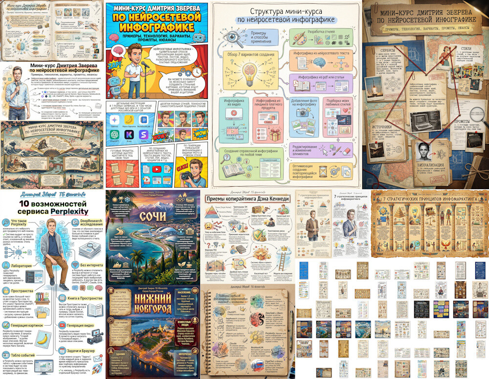 Быстрое изучение и обработка любых объемов информации и генерация по ним разнообразного контента: отчетов, невероятных презентаций Nano-banana, инфографики, интеллект-карт, аудио и видео с нейро-ведущими, тестов и так далее/