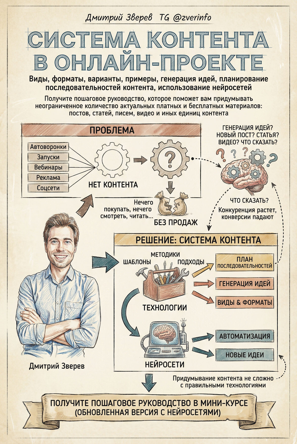 Получите пошаговое руководство, которое поможет вам придумывать неограниченное количество актуальных платных и бесплатных материалов: постов, статей, писем, видео и иных единиц контента