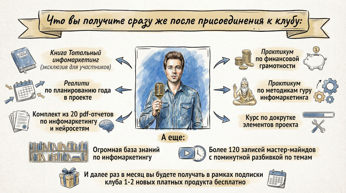 На 4 варианте вы получите сразу же доступ к целому ряду инфопродуктов внутри Клуба: