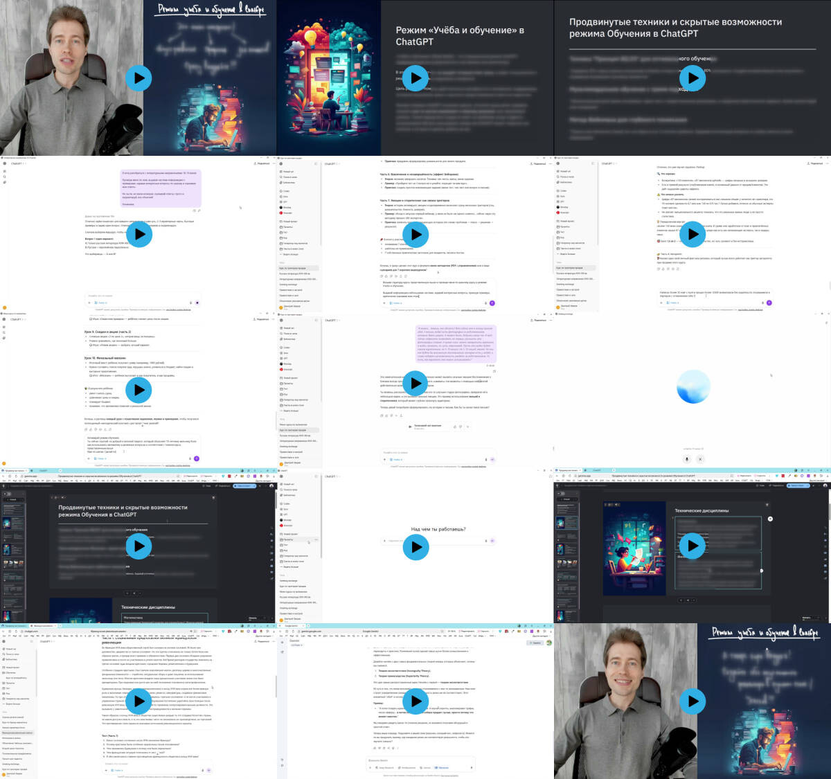 Простые и продвинутые промпты, примеры, приемы, решение разнообразных "жизненных" вопросов, контент-планы, посты, письма, pdf-отчеты, статьи, истории, сценарии для видео и презентаций, продающие тексты, закрытие возражений, выжимки, подборки, DeepResearch, режим Агента, режим Учеба, холсты, проекты, документы, картинки, Sora, GPTs, документы, голосовой и видео-режимы и другие функции