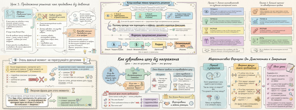 Была показана запись мини-курса по проведению диагностических бесплатных консультаций со встроенными продажами, который сначала разработан, а потом создан.