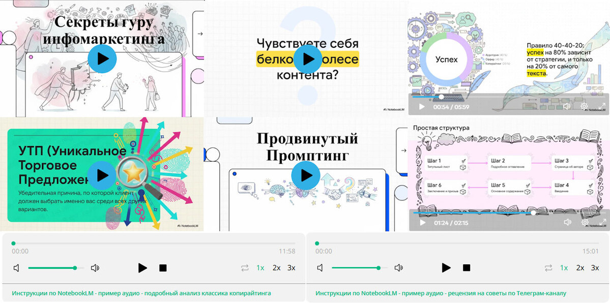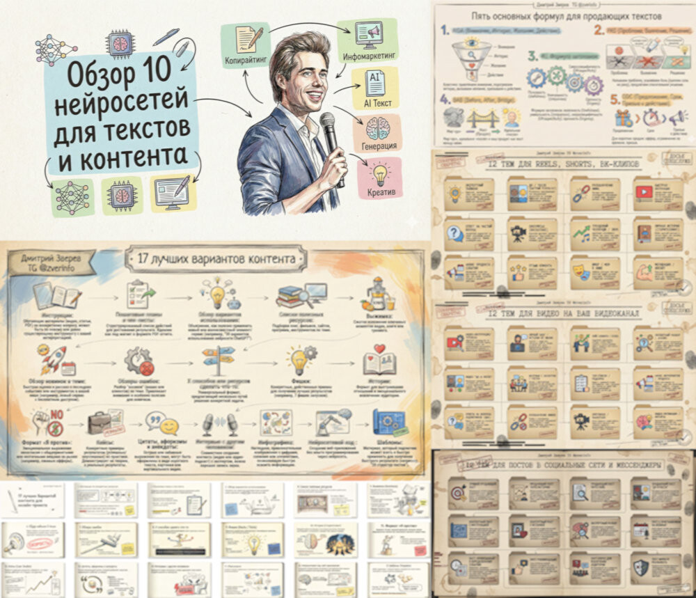Примеры подготовленных мной текстов, картинок, видео, аудио, презентаций, инфографики в самых разных сервисах (в том числе и в Nano-banana, конечно :)